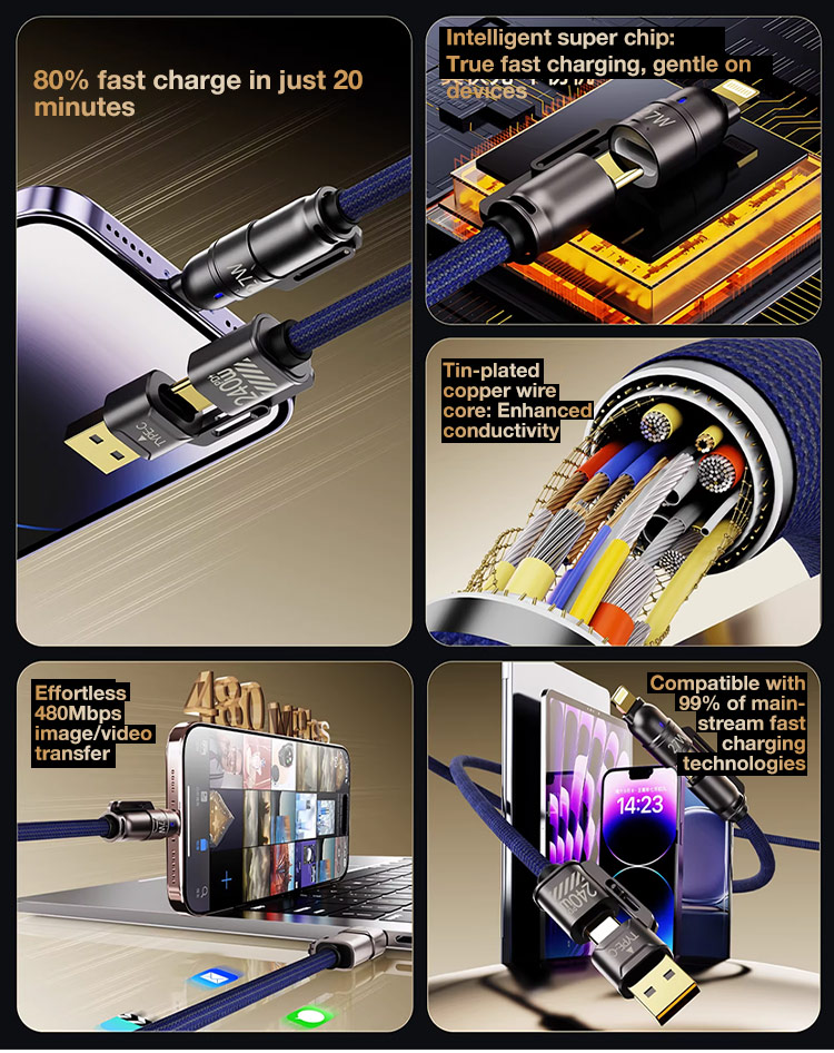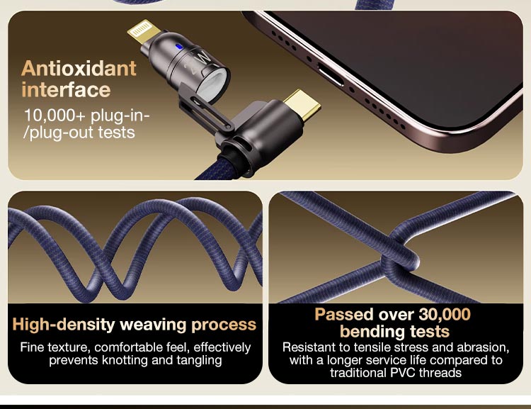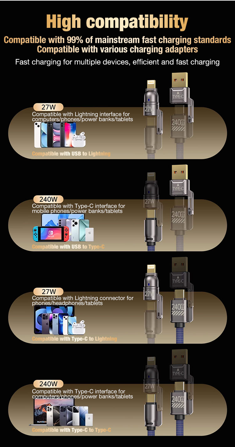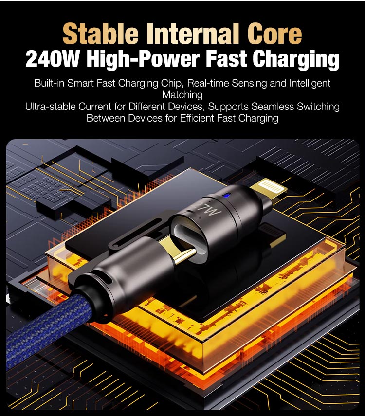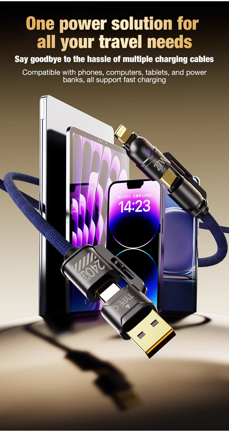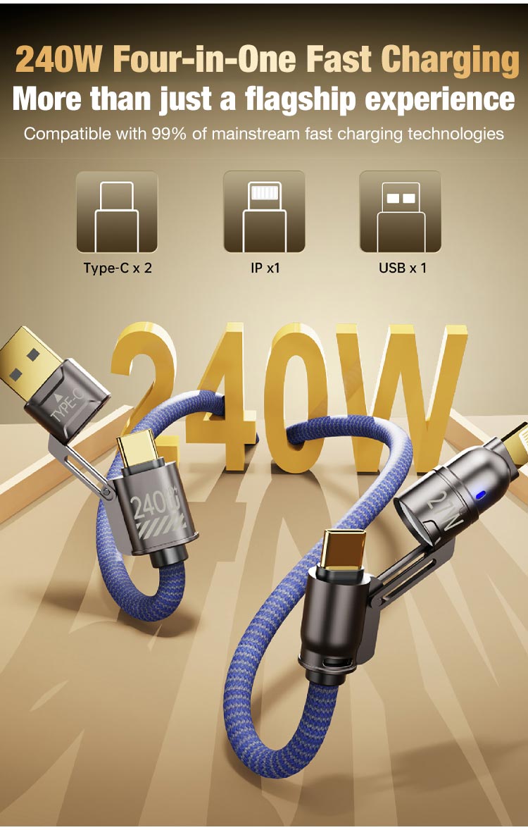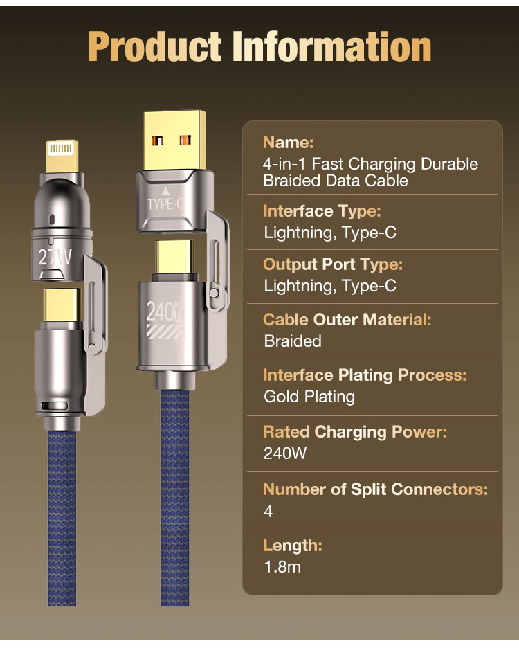 • 4-In-1 Fast Charging Durable Braided Data Cable